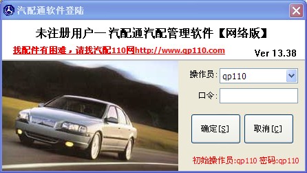 汽配號登錄窗口(如下圖),如果您之前有注冊QP號,您可以用之前注冊的QP號和密碼在此登錄即可。非注冊會員無法打印銷售單,無法設置公司名稱及聯系方式,庫存只能存放200件單品。
