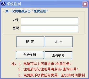 若之前沒有注冊QP號,可以點擊上圖中的“免費注冊”注冊一個QP號,成為軟件會員,注冊窗口如下圖: