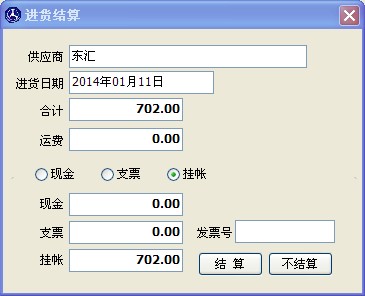 如果這個單子沒有運費,可不用填寫,選擇結算方式,當結算方式為掛帳時,在應付款里就會有這筆款項。