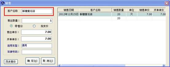 客戶名稱框里輸入內容,如果此客戶購買過此配件,那么在窗口的右邊將調出此客戶的購買記錄及價格,如下圖