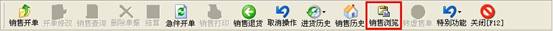 點擊“銷售開單”上面的“銷售瀏覽”按鈕可對以往的銷售單據進行查看