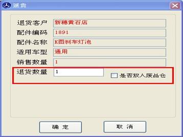 點擊“退貨”按鈕后會彈出如下圖的窗口,在退貨數量里輸入退貨數。