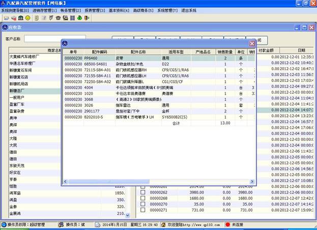 選擇右邊的某一個單子,點擊上方的“明細”按鈕可以查看此單子的配件明細,如下圖