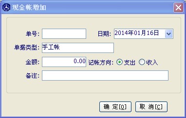 當您進貨或者銷售時付款或收款方式選擇為現金時,那這筆帳就會出現在現金帳里,反之選擇為銀行是,這筆帳就出現在銀行帳里。您每做一筆收款或者付款,相應的現金帳或者銀行帳都會有記錄。如下圖,如果您要增加手工帳,可以點擊增加按鈕。