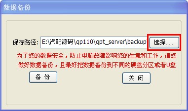 打開數據備份窗口如下圖,保存路徑項的默認位置上您軟件安裝目錄下的“backup”文件夾,如果您要修改備份目錄,可以點擊后面的“選擇”按鈕,選擇您要存放的目錄。選擇好存放目錄后,點擊備份即可。