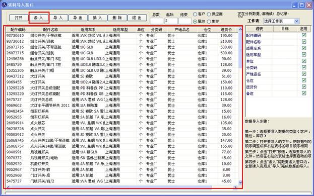 再點上方的“讀入”按鈕,將Excel 數據讀入到軟件里,如下圖