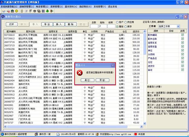注意,在這里您不要點擊太快,有一個地方需要您選擇如上圖,提醒您是否清空屬性表中的現有數據,如果您屬性表中有數據這里點“是”,那么之前的數據將清空,您可以點“否”后繼續操作。如果您的數據較多,導入時間可能比較長,請您耐心等待,不要關閉窗口。