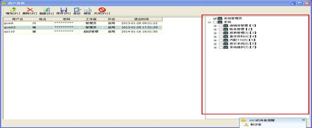 操作員管理此窗操作相對簡單,都是些添加,刪除,修改的操作,這里有一點要注意,當您添加了一個新操作員時記得將右邊的權限勾上,要不然新的操作員登錄上去后什么權限都沒有,什么東西都操作不了。