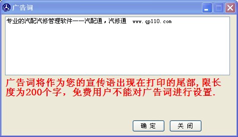 此廣告詞設置后將在銷售單的下方顯示,且此功能只有增強版和網站版使用,單機版不能對廣告詞進行修改,且廣告詞為我們汽配通的廣告詞。