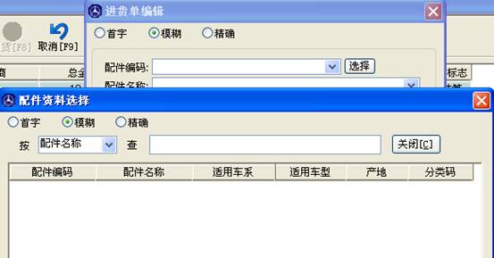 6、 配件太多記不住配件編號怎么辦?輸入編號、配件名稱等等會很麻煩,那么多編號肯定是記不住的,先填好供應商、采購員、發票號等等,之后就是開新單會彈出: