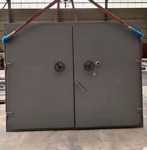 門框:一般由槽鋼和工字鋼組合而成的框架結構,與墻體連接,為門扇提供支撐和固定,門體的穩定性和承壓能力。
