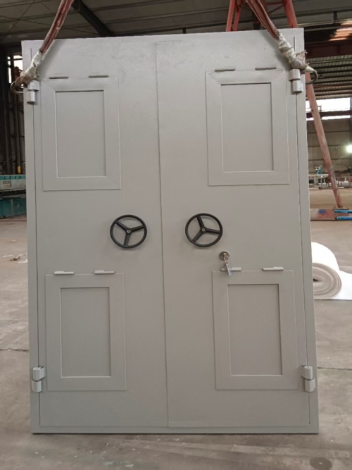 (1)泄爆門采用鋼質(zhì)門框、骨架以及門扇,門扇內(nèi)部填充保溫材料,并配以特種鉸鏈、泄爆裝置等五金配件。